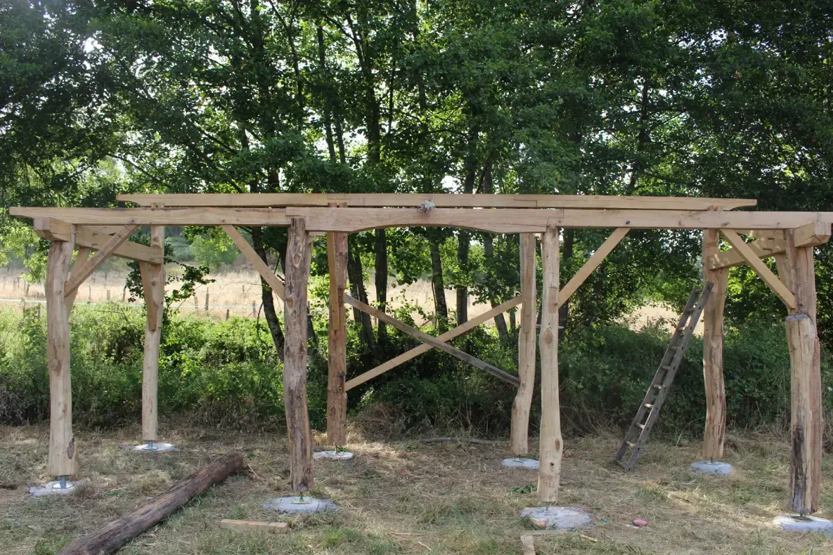 Abri pour animauxFabrication d’une étableDemi-fermes avec tronc d'acacia - Assemblages traditionnelsGalerie d'images